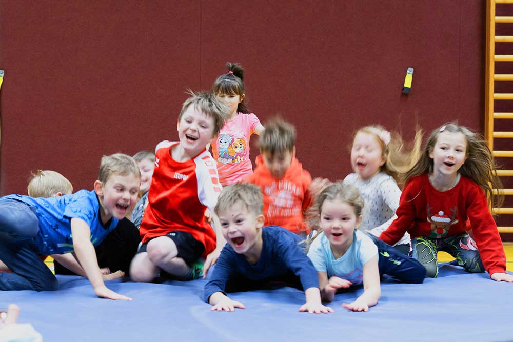 Mit vereinten Kräften eine riiiiiesig schwere Matte durch den Sportraum schieben, in hoooooooohem Bogen durch die Luft fliegen, den eigenen Körper mit allen Sinnen neu wahrnehmen, gemeinsam Erfolge erleben, Neues kennenlernen und mal wieder riiiichtig auspowern – Kinder lieben es und jeder Erwachsene erinnert sich gern an dieses Gefühl.