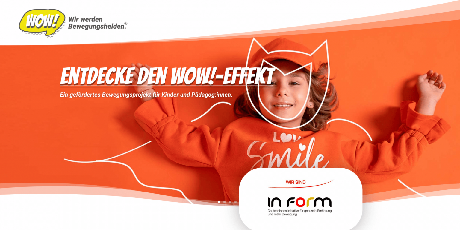 „WOW! – Wir werden Bewegungshelden.“ ist ein speziell auf Kita- und Grundschul-Kinder ausgerichtetes Bewegungsprogramm mit den Zielen, Freude an Bewegung zu reaktivieren und nachhaltig Bewegungs- und Spielideen zu vermitteln. Dem pädagogischen Personal werden Methoden aufgezeigt und Wissenstransfer ermöglicht.